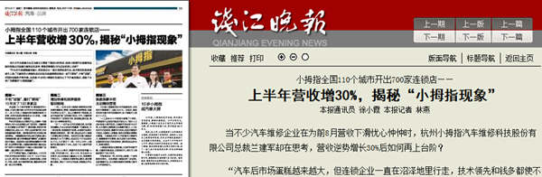 "" 《錢江晚報》密切關(guān)注 當(dāng)不少汽車維修企業(yè)在為前8月營收下滑而憂心忡忡時,杭州小拇指汽車維修科技股份有限公司總裁蘭建軍卻在思考,營收逆勢增長30%后如何再上臺階? “汽車后市場...